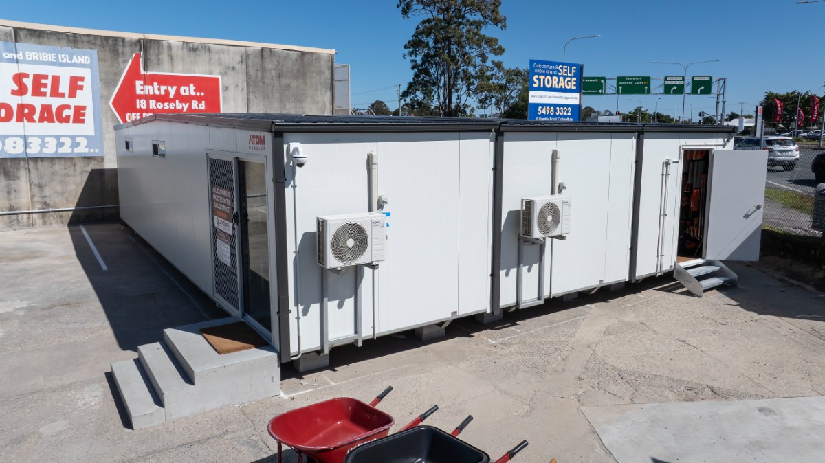Scope of Works: Atom Modular designed, supplied and installed 12x9m portable buildings. Three temporary modular buildings joined with our smart seal system. The fit out included commercial grade vinyl flooring, LED lighting and power points, reverse-cycle air conditioning for year round comfort, colourbond roofing with gutters and downpipes for durability and a secure sliding entry door. The full project delivery covered transport, cranage and on-site installation by our team at Lyndons new Caboolture branch in Queensland.